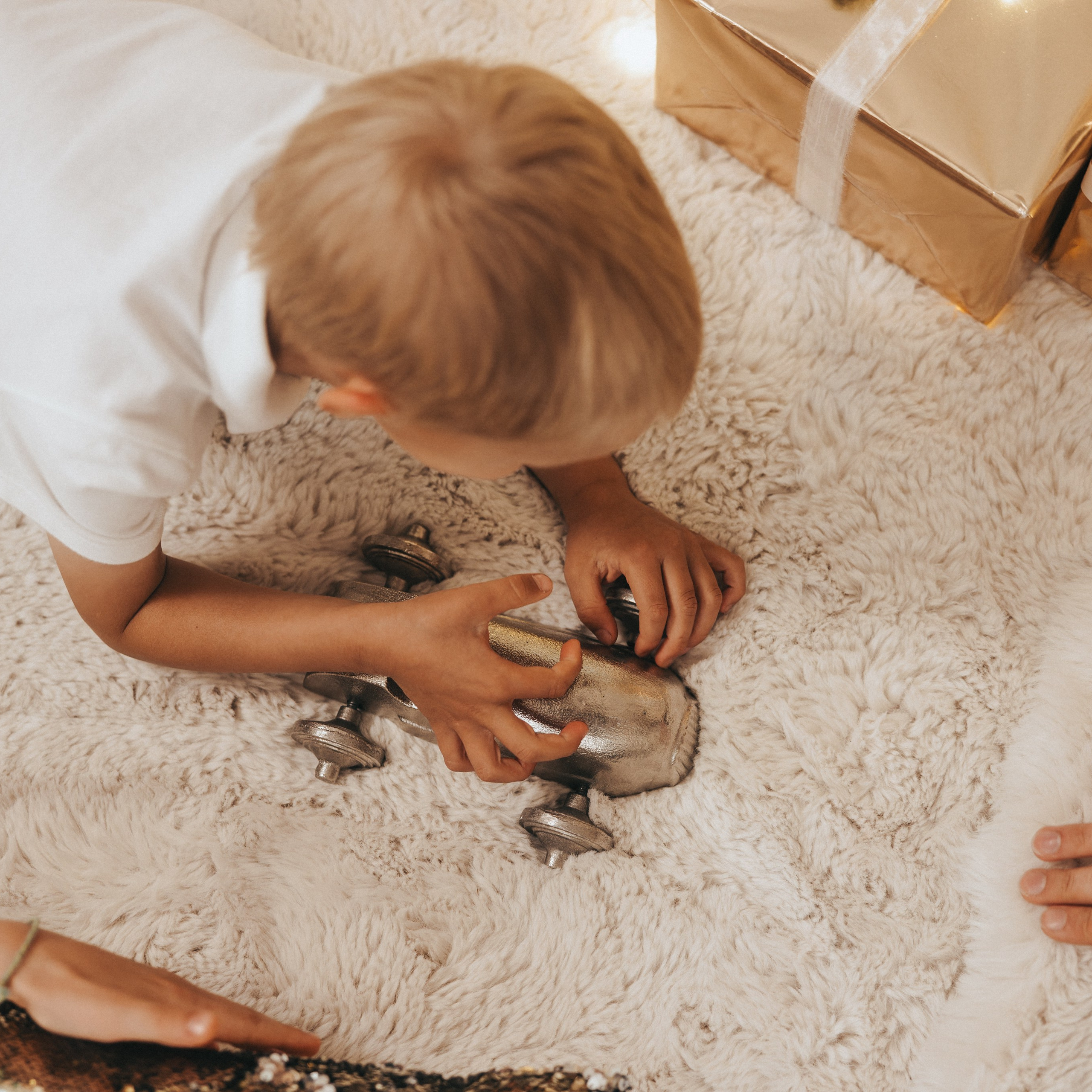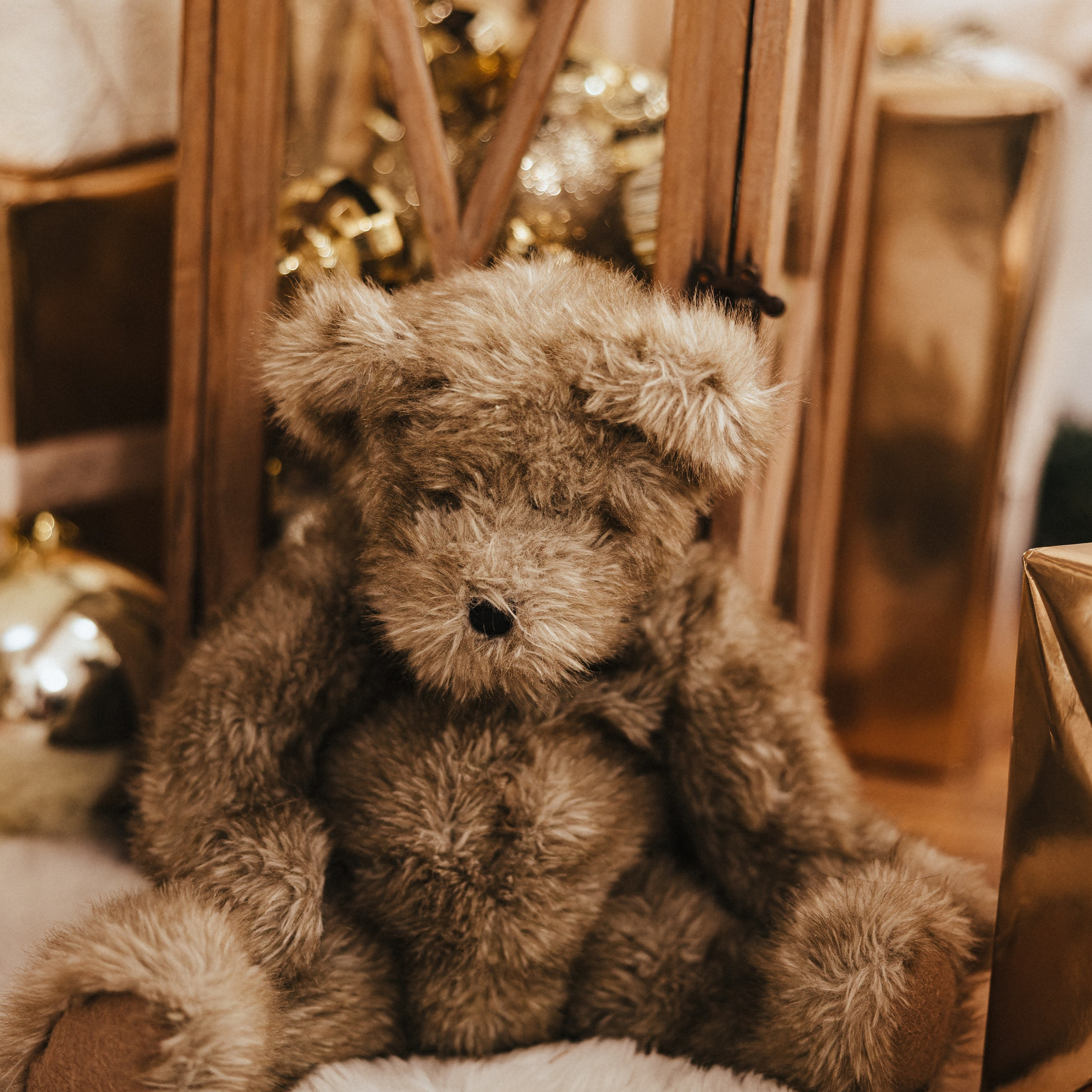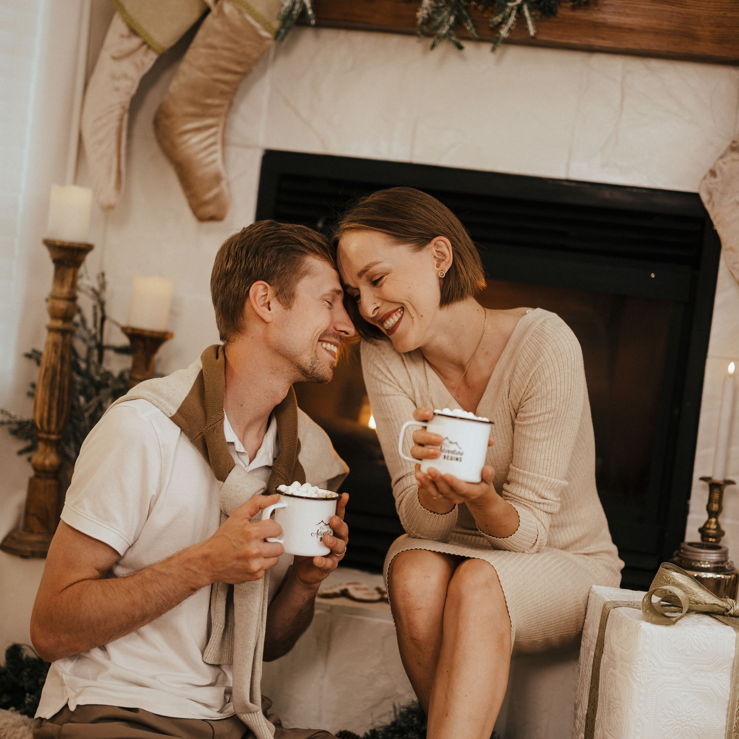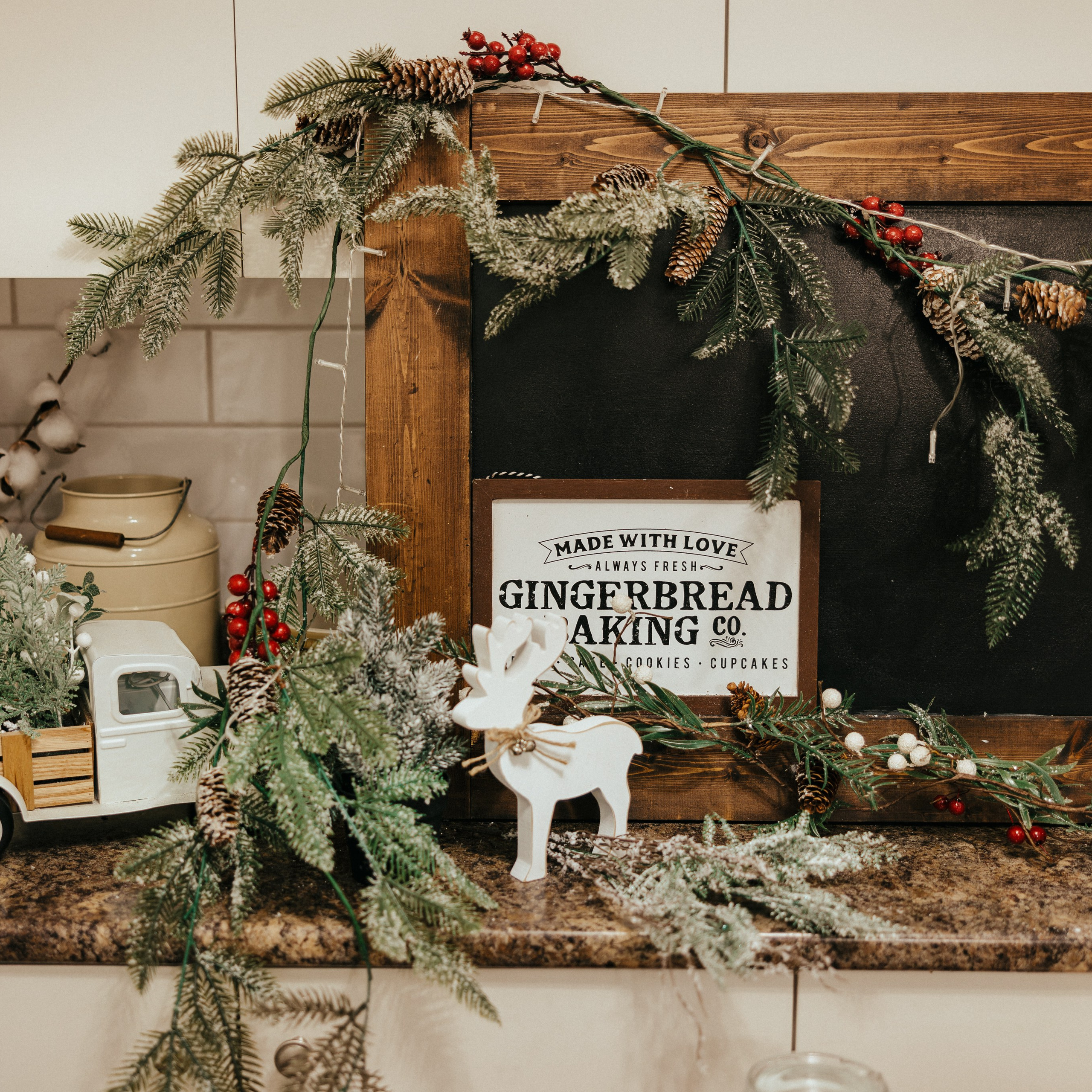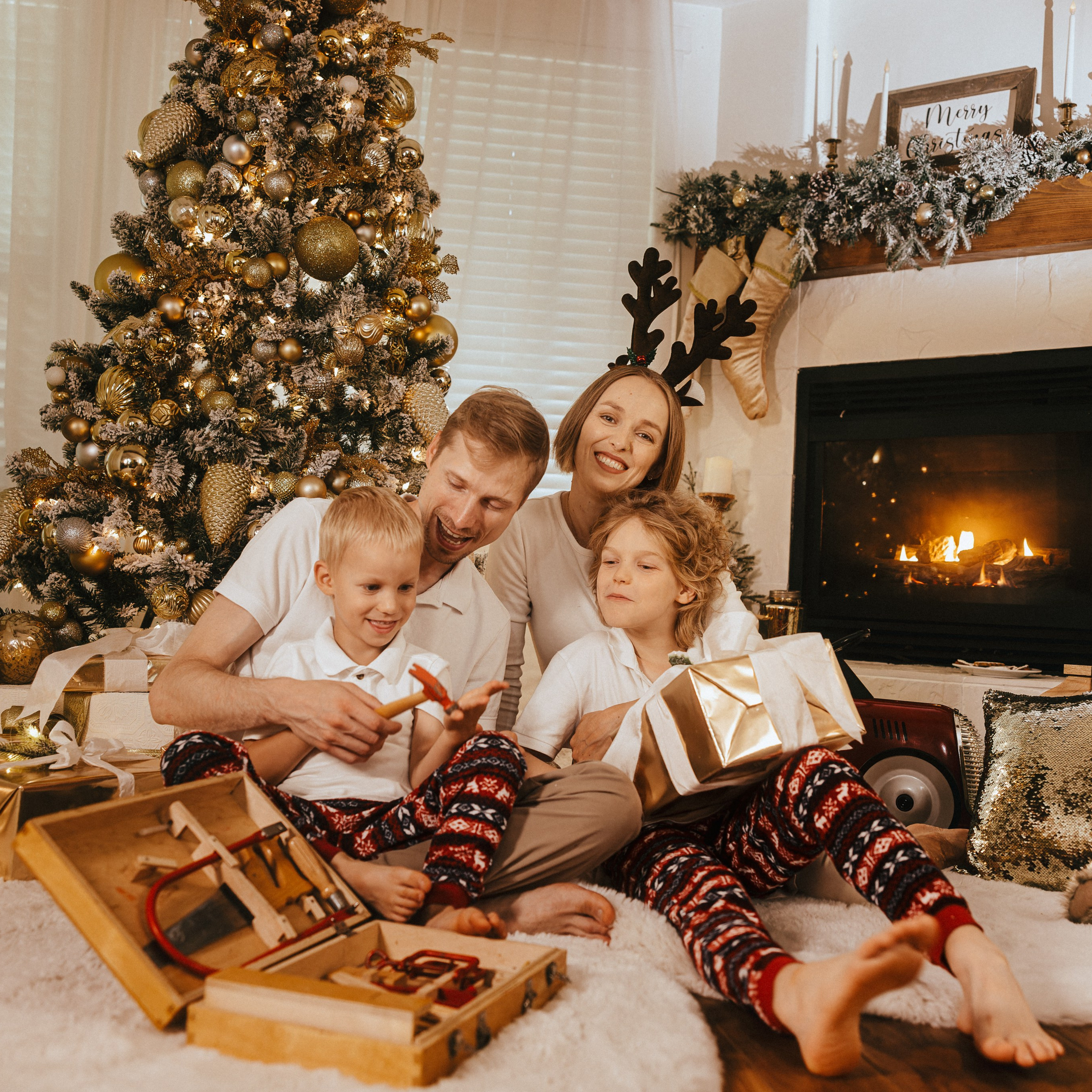 — Christmas props available for use (rocking horse, presents, hot chocolate, red metal vintage race car, and more)