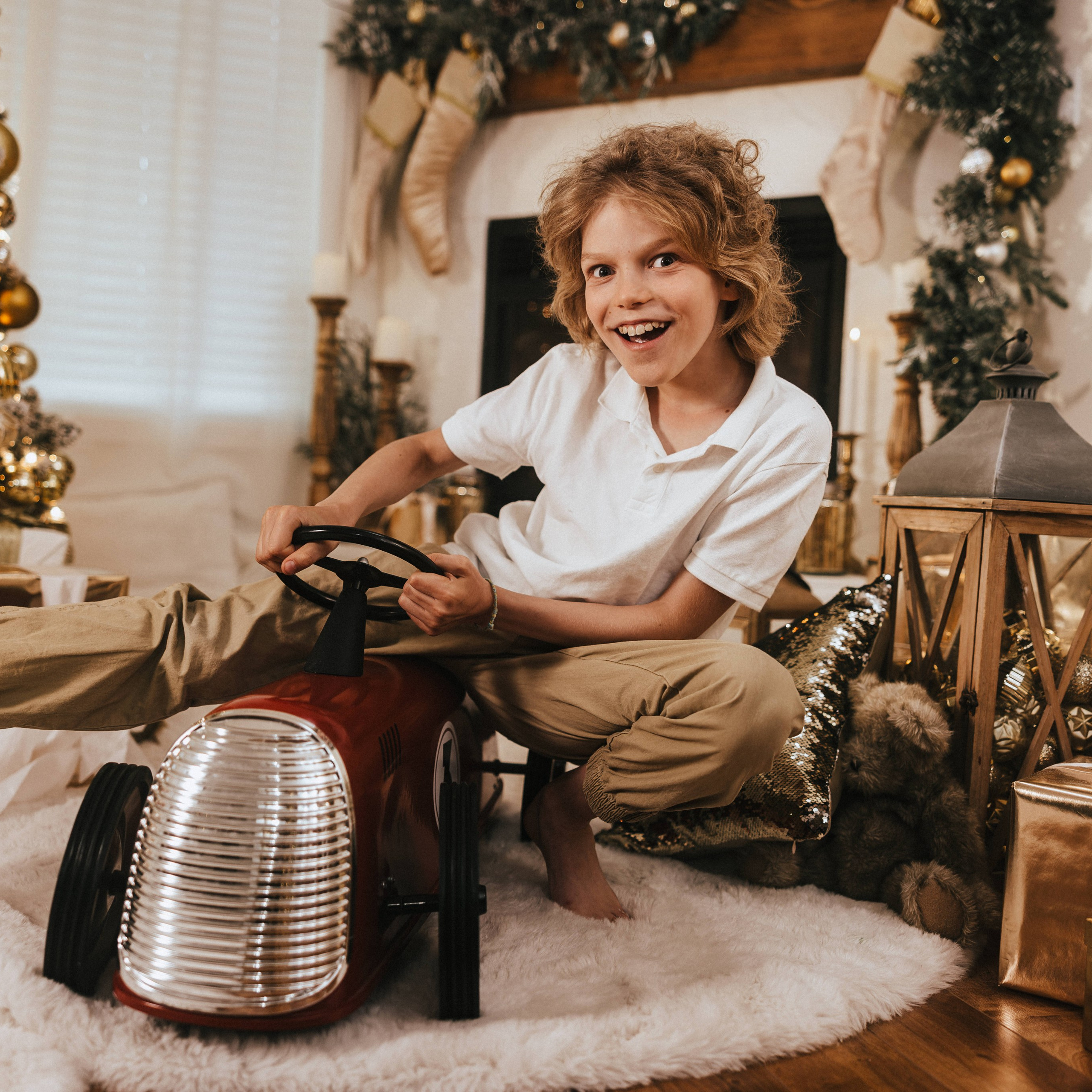 — christmas props available for use (rocking horse, presents, hot chocolate, red metal vintage race car, and more)